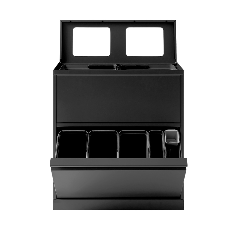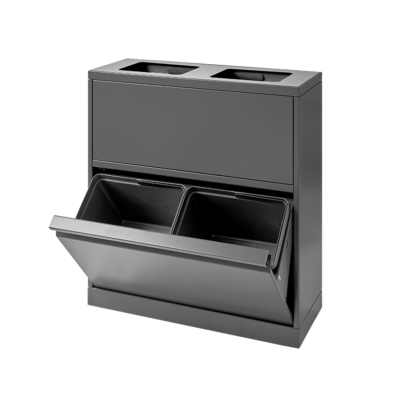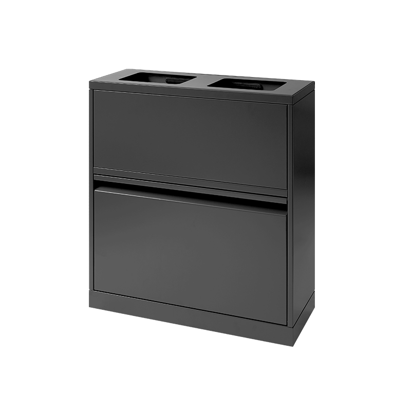 Fleksibelt affaldssystem fra Bica sikrer nem og brugervenlig affaldssortering på arbejdspladsen. Affaldssystemet er designet med 2 åbne indkast og med en skuffe – skabt til brug af inderbeholdere. Der medfølger inderbeholdere efter ønske og kan dermed tilpasses efter behov, så man i alt kan opnå sortering i 11 enheder. Den samlede volumen skal blot gå op i 40 liter i både den øverste og nederste del. Fx 20 + 20 liter eller 15 + 15 + 10 liter. Bica Model 880 er absolut én af vores mest populære modeller.