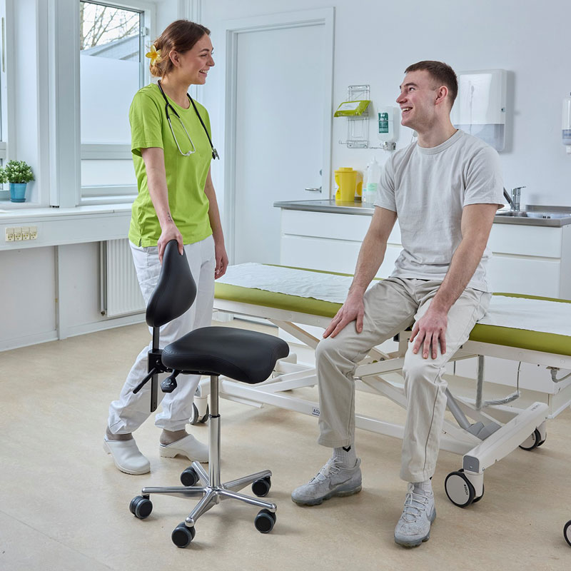 Stolen er specielt designet til at give dit bækken og din ryg en oprejst position, så du ikke falder sammen som på en almindelig stol. De væsentligste muskelgrupper er sikret fuld frihed til at bevæge sig.
