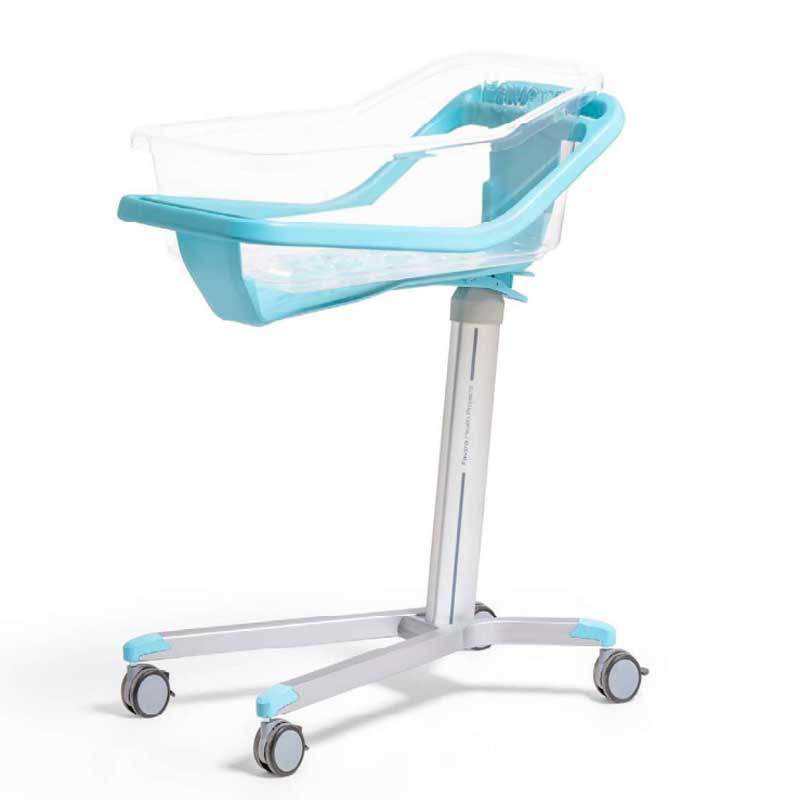 Tiny Vugge er en højdejusterbar hospitalsvugge i pulverlakeret stål og aluminium med gennemsigtigt vuggekar og komfortabel madras. Med mulighed for tilt og integrerede håndtag er vuggen både praktisk og sikker – ideel til professionel brug.