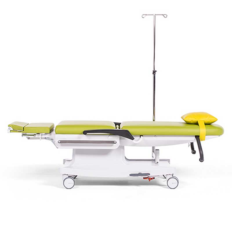 - Du kan tilpasse højden, ryglænet, sædevinklen, bendelen og Trendelenburg-position — alt styret elektrisk for optimal komfort under behandling og aflastning.