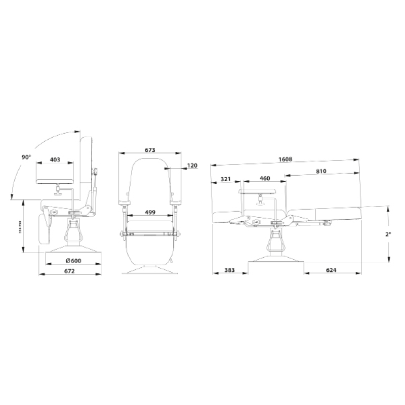 - Indstilling af vinkling for armstøtte vha. kugleleje.
