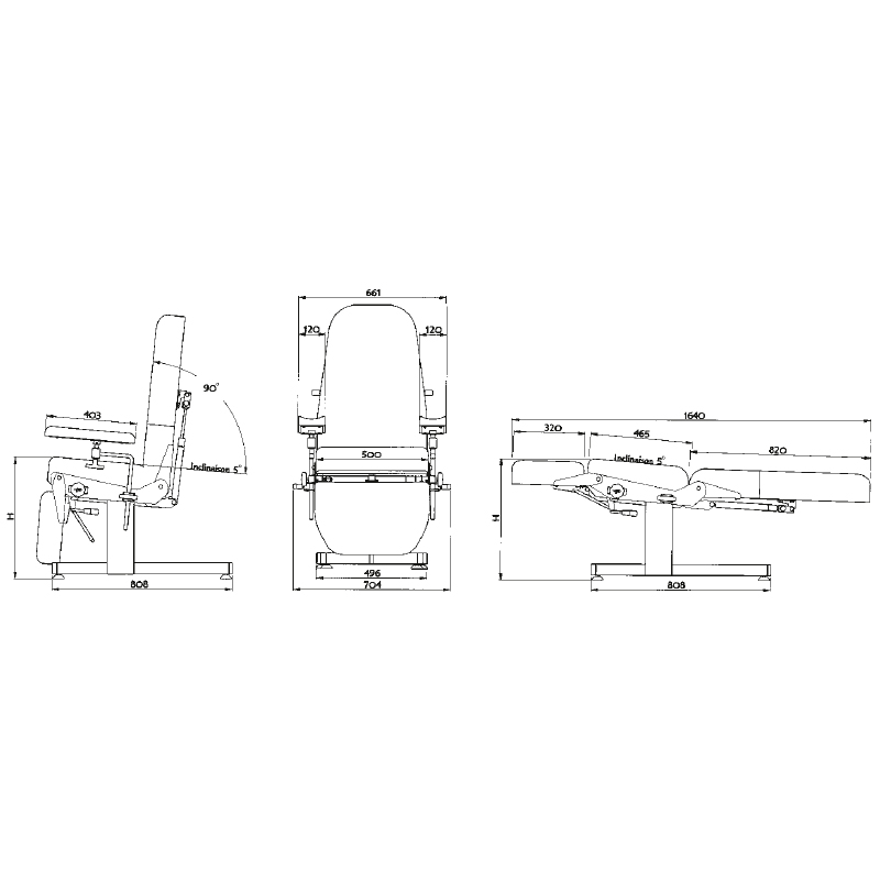- Variabel højde fra 57 til 77 cm (hydraulisk model).