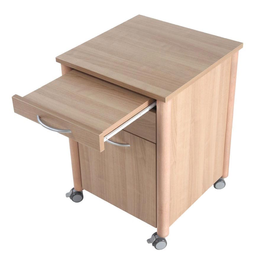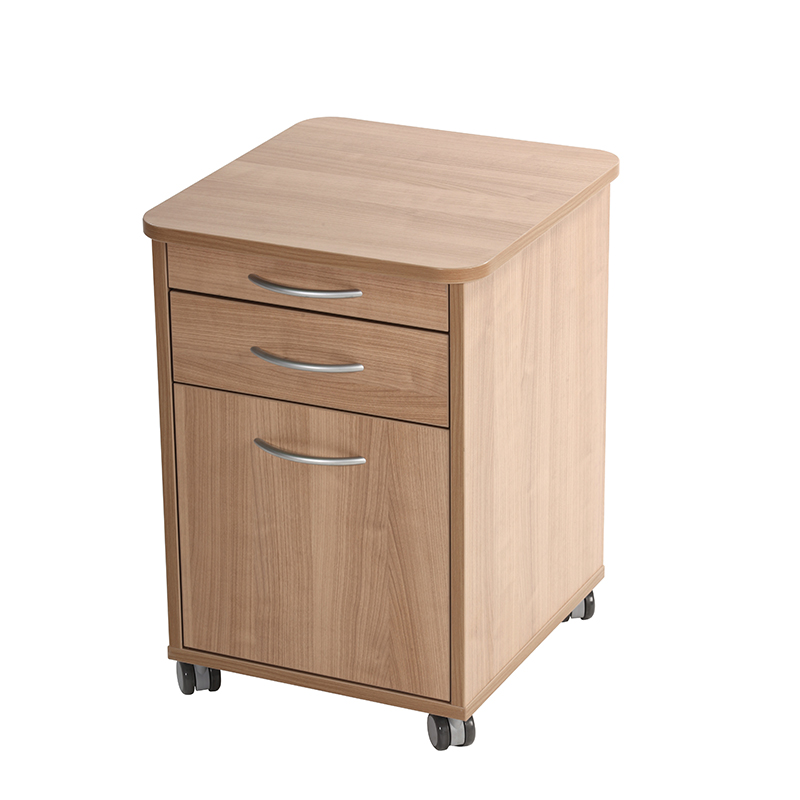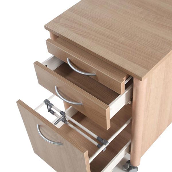 Sengebord i egetræ med 3 skuffer og udtræksbakke med lås