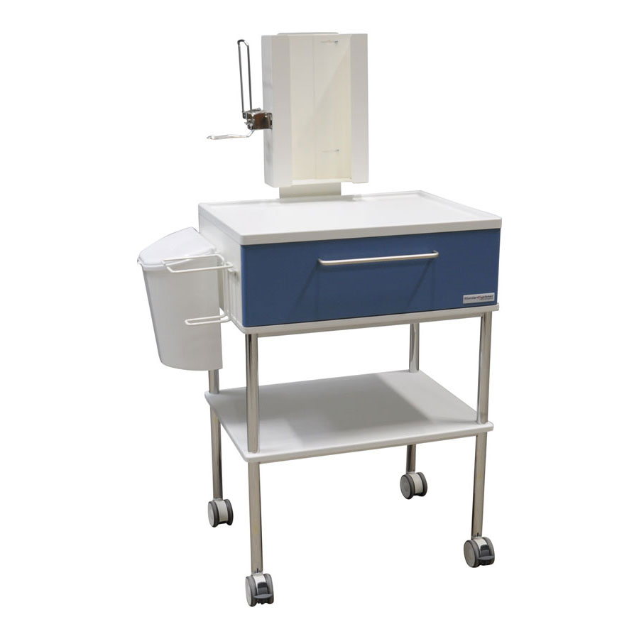 Sygeplejevogn med skuffer og hylde fås både med og uden tilbehør.