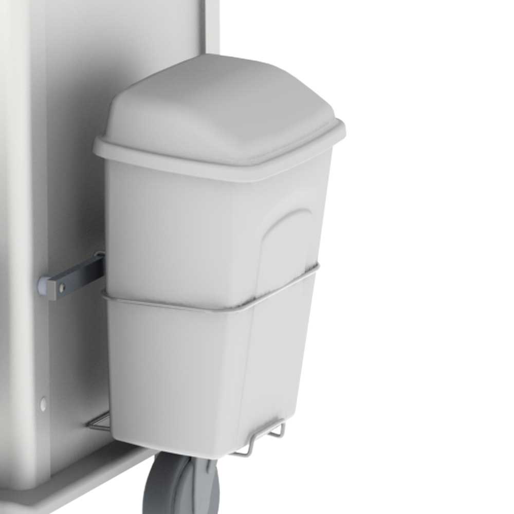 Affaldsspanden aftørres med opvredet klud. Der kan anvendes alle almindelige neutrale rengøringsmidler. Tåler aftørring med sprit.