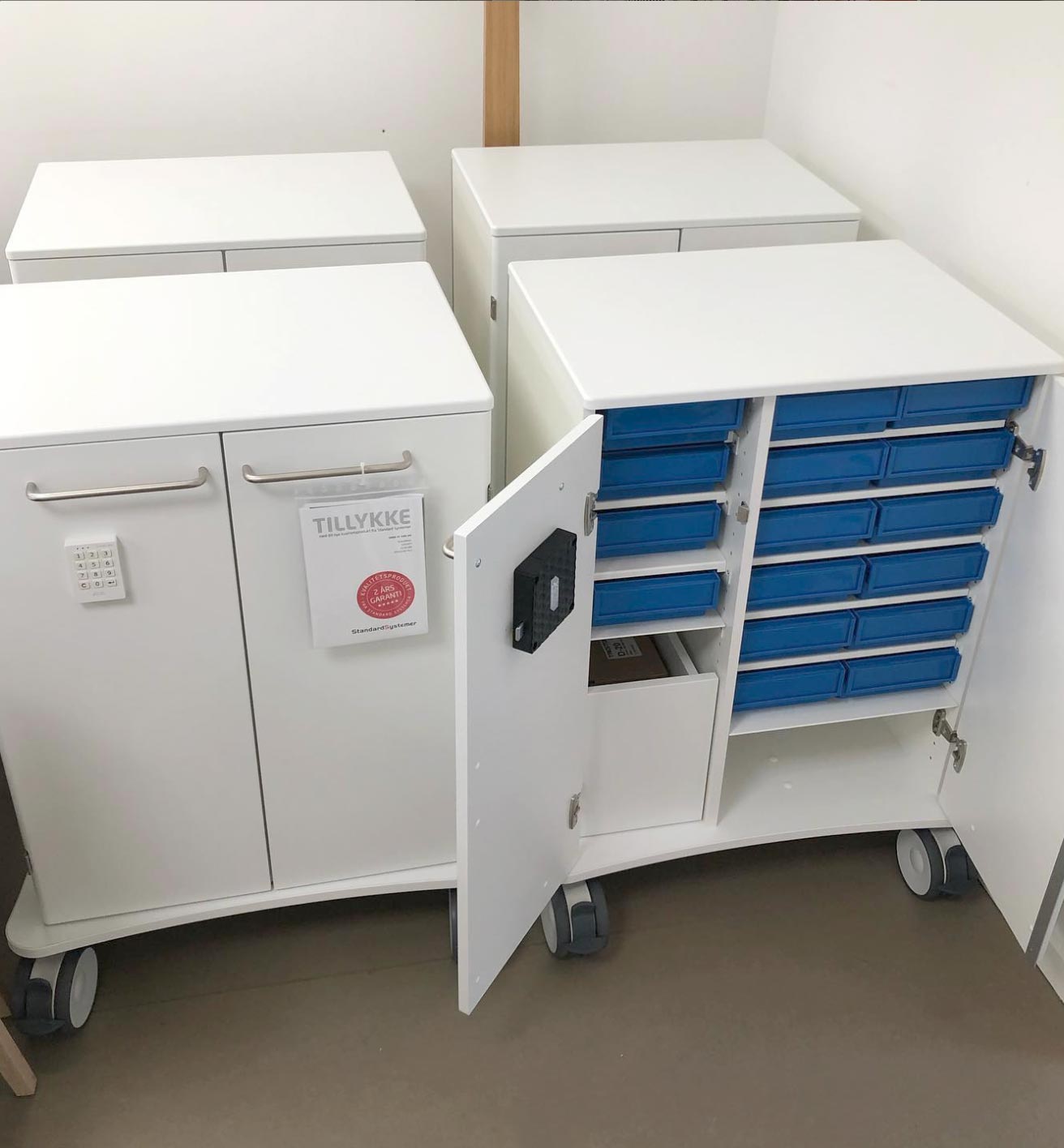 Til Plejehjemmet Huset William i Valby har vi leveret 6 medicin doseringsborde og 4 medicinvogne.