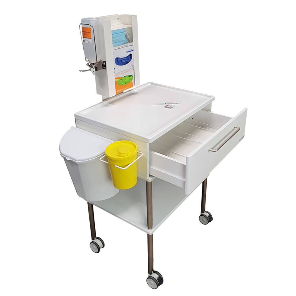 Vores sygeplejevogn har alt det, der lige skal til ved personlig pleje: indret skuffen med de remedier, du har brug for. Gerne til flere forskellige procedurer. Der er god plads til vaskefade, cremer mm og god fralægningsplads. Sygeplejevognen er intuitiv at bruge og sparer tid, ressourcer og skridt.